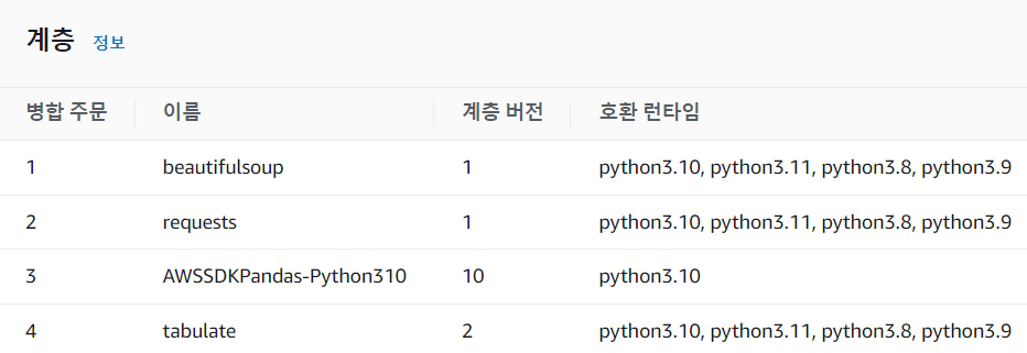Lambda 함수에 layer 추가하는 건 이 글을 참고하자. 나는 아래와 같이 추가를 했다.